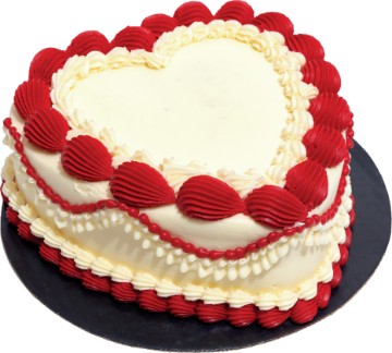 <p>Serves 10-12. Enjoy a 2-layer heart shaped cake of your choice of chocolate or yellow cake, filled and iced with cream cheese icing. It has a charming vintage feel with our classic red and white piping accents.</p>